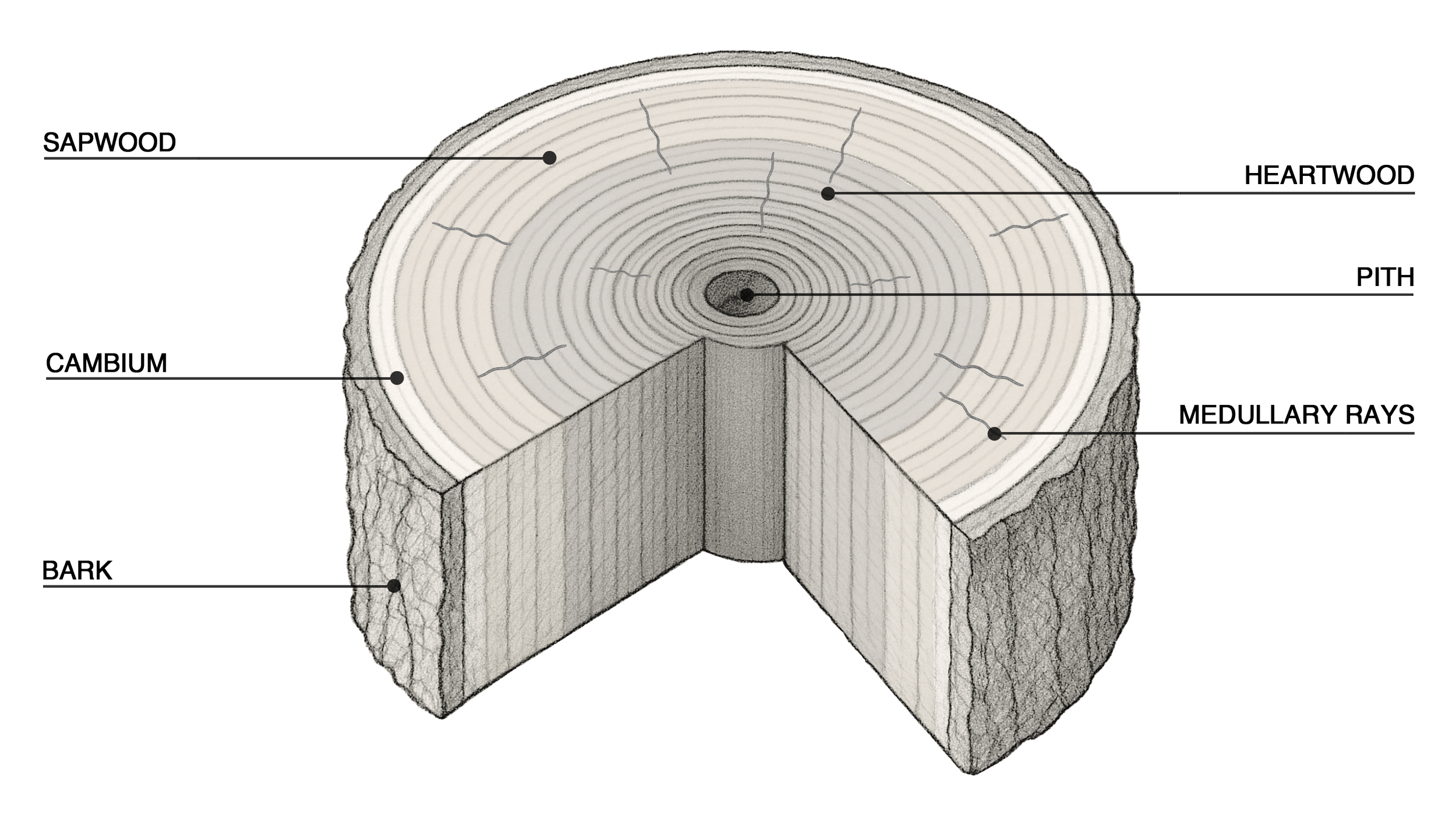 Cambium Too thin to show up in boards, but its job matters—this is the layer that keeps the tree growing straight, strong, and usable for clean cuts.